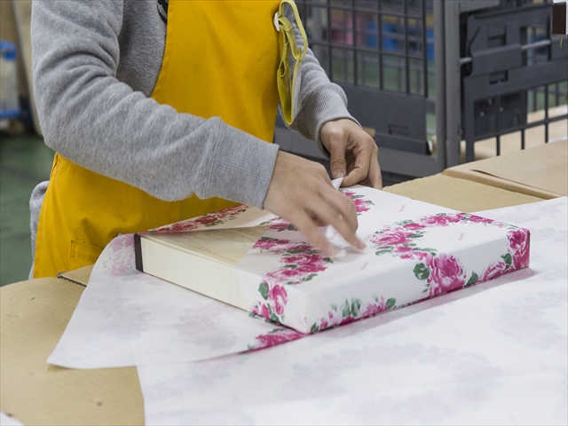 贈答用の商品だからパッケージも複雑な形状であったり、梱包も特別だったり細やかな対応が必要となります。当たり前のことですが一つひとつ贈られる方の気持ち、贈られた方の気持ちを意識しながら丁寧にミスのない加工作業を施していきます。細かな流通加工のご要望や個別配送まで対応が可能で、メーカーさまも安心してご依頼いただけるとご満足いただいております。