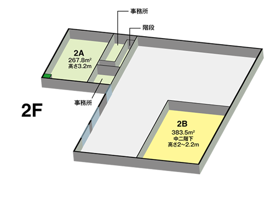 坪数 天井高 2A 81坪 3.2m 2B 116坪 2m